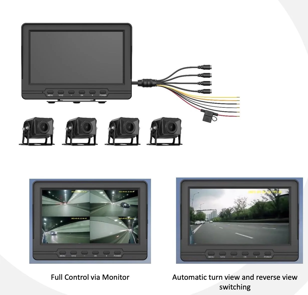 • Get the ability to view your camera from an aerial view or rear view at the same time.